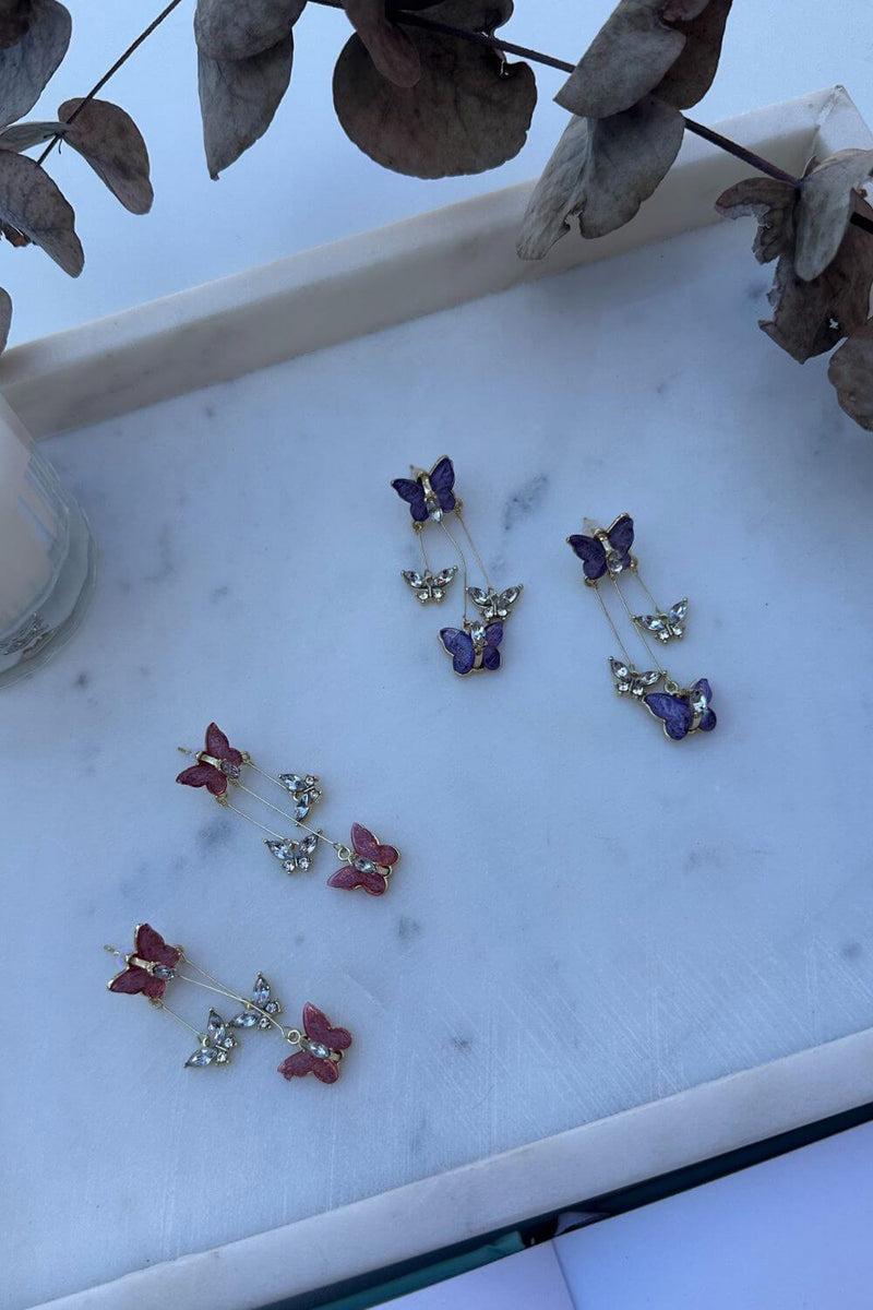 Need some bling and colour to finish off your outfit? Look no further than the BoElle Whimsical Butterfly Drop Earrings. Perfect for event styling such as racewear fashion, weddings, and evening wear.