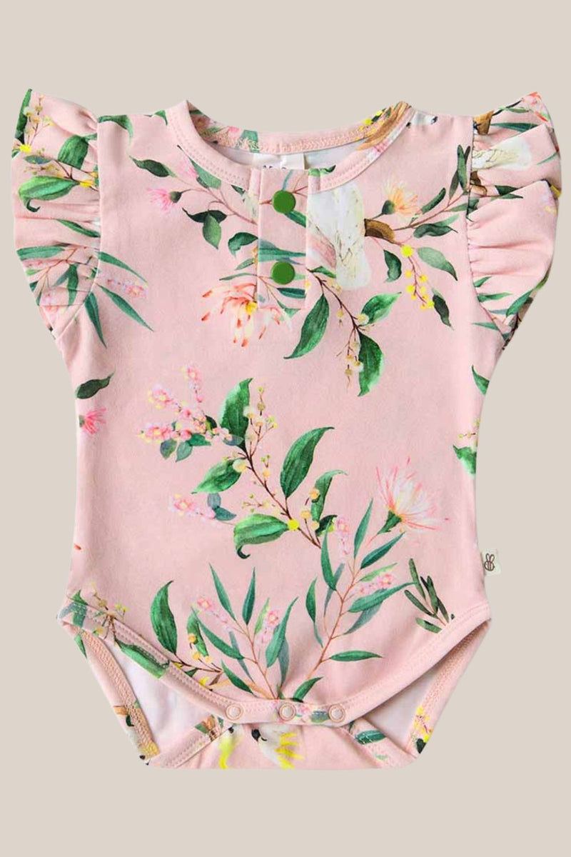Snuggle Hunny Cockatoo Short Sleeve Organic Bodysuit With Frill