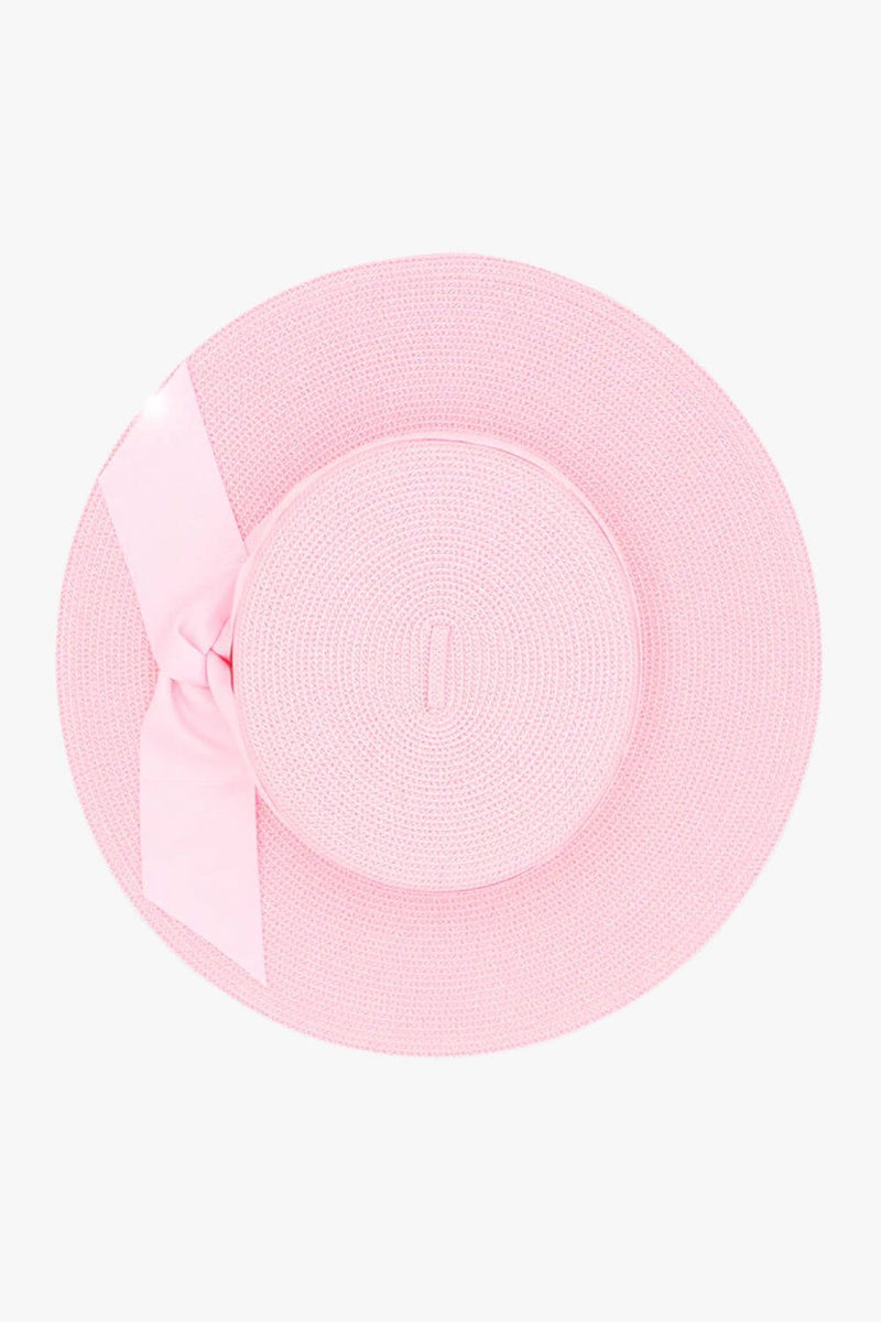 • Classic boater shape finished with a grosgrain ribbon trim around the crown, and finished with a side bow