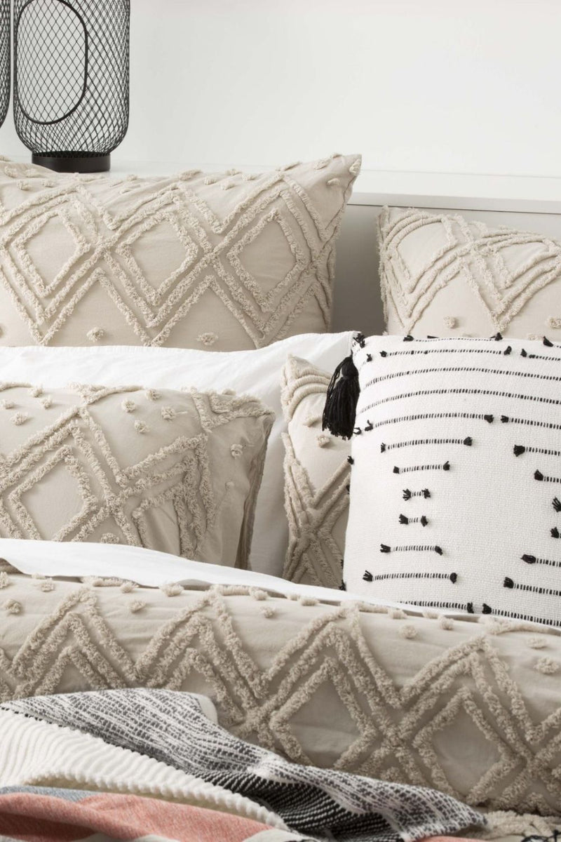 Super Chic with a detailed, tufted and textured design yet simple and elegant. Experience sleeping on cloud - like perfection with this incredibly refined Medallion quilt cover sets. Brimming with tuffted embroidery and decorated with unique pattern, the Medallion collection undergoes an innovative garment-washing process that results in the ultimate vintage softness.