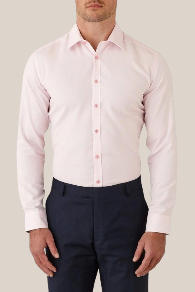 A honeycomb textured shirt in 100% cotton. A great addition to your winter tailoring wardrobe, perfect for office wear or your next smart casual event.