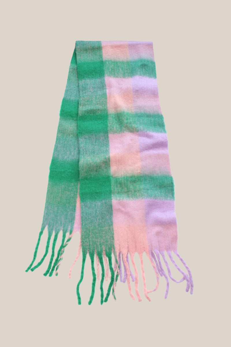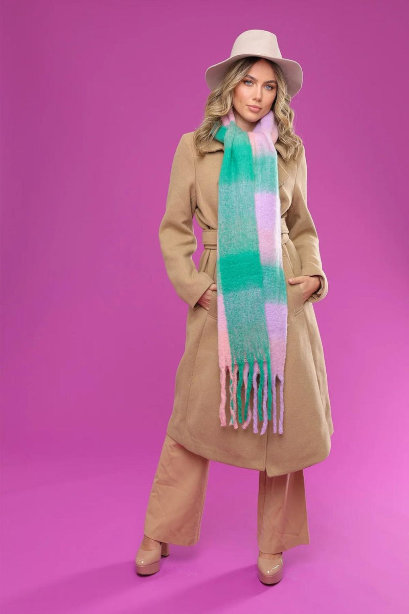 The Morgan and Taylor Emma Scarf in pale pink is bright, chic and chunky, ideal for snug winter styling.