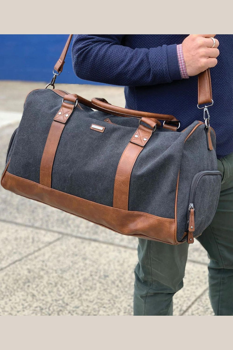 Unisex, canvas Pierre Cardin overnight duffle bag, made for weekend getaways.