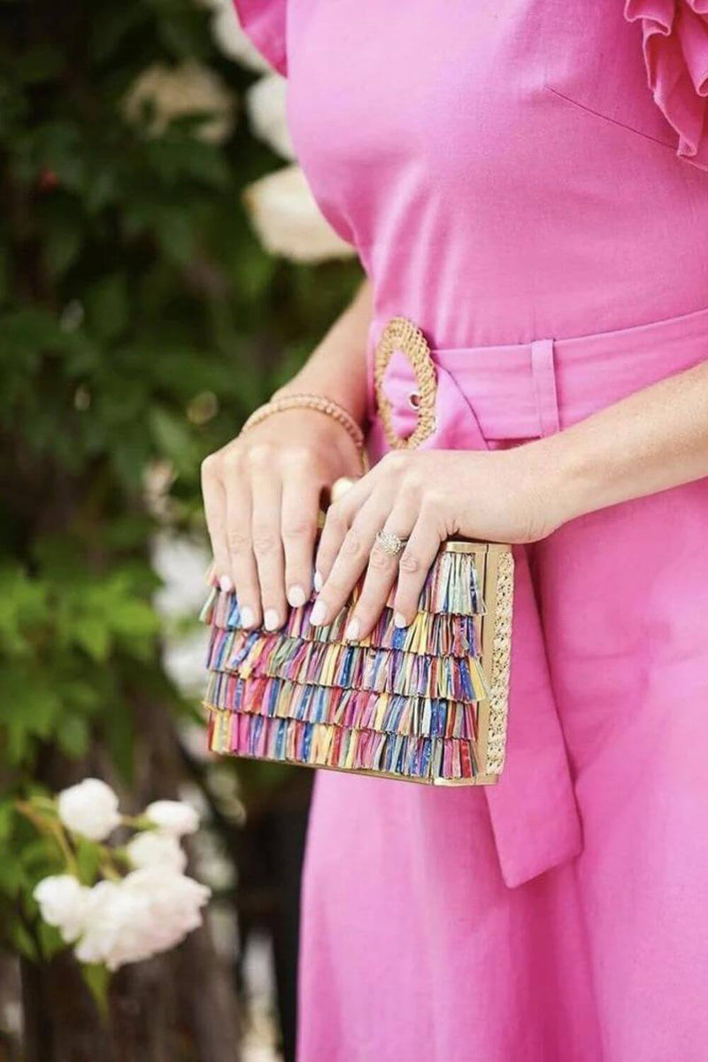 Flaunt this season's fringe trend in the most fun way possible with the CARLITA Fringe Clutch Bag. This bag features layers of multi-colour raffia fringing and brushed gold tone hardware to up the luxe factor. Store all your event essentials inside its roomy interior.