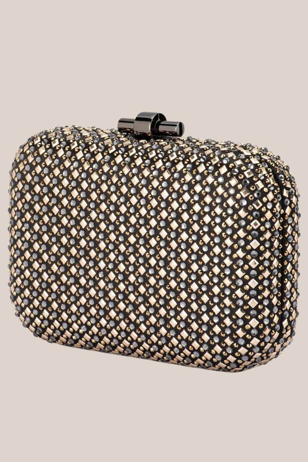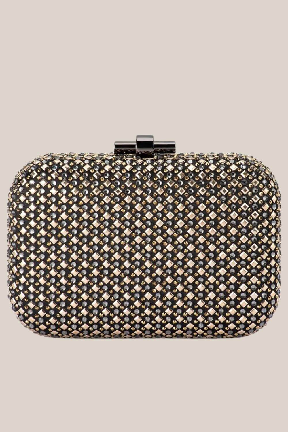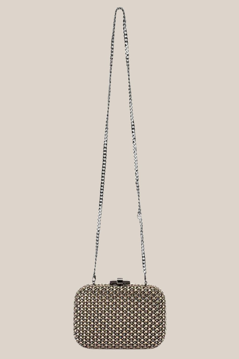 With an intricate design and glossy hardware, the Ellen Hotfix Clutch is a Red Carpet show stopper. The hotfix crystals are super sparkly and the shape fits comfortably in the palm of your hand. Wear it as a clutch by tucking the shoulder chain inside the bag or wear it as a shoulder bag when you need to go hands free.