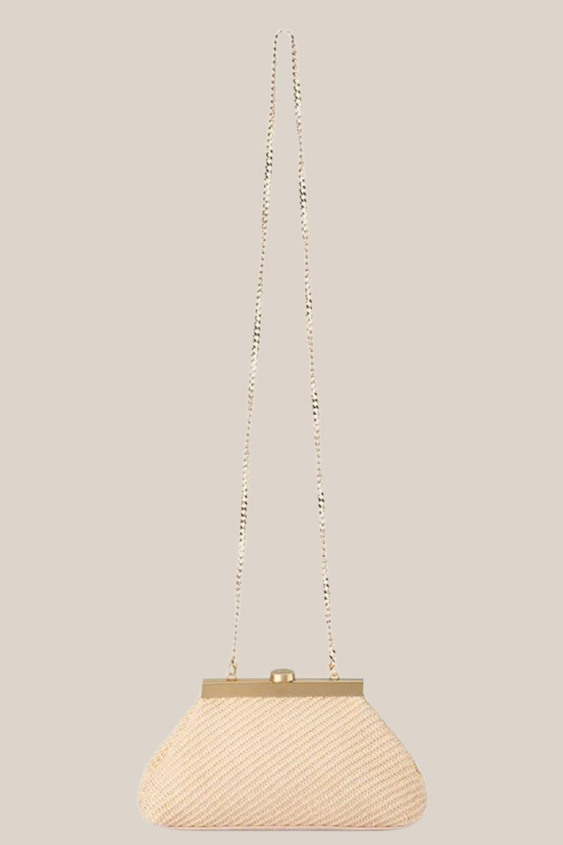 The Hanna Woven Straw Clutch is soft and roomy and perfect for all those summer events when you need to carry a little bit extra with you. This versatile bag will take you from beach to bar and back again. It also includes two chains of different lengths for multiple styling options.