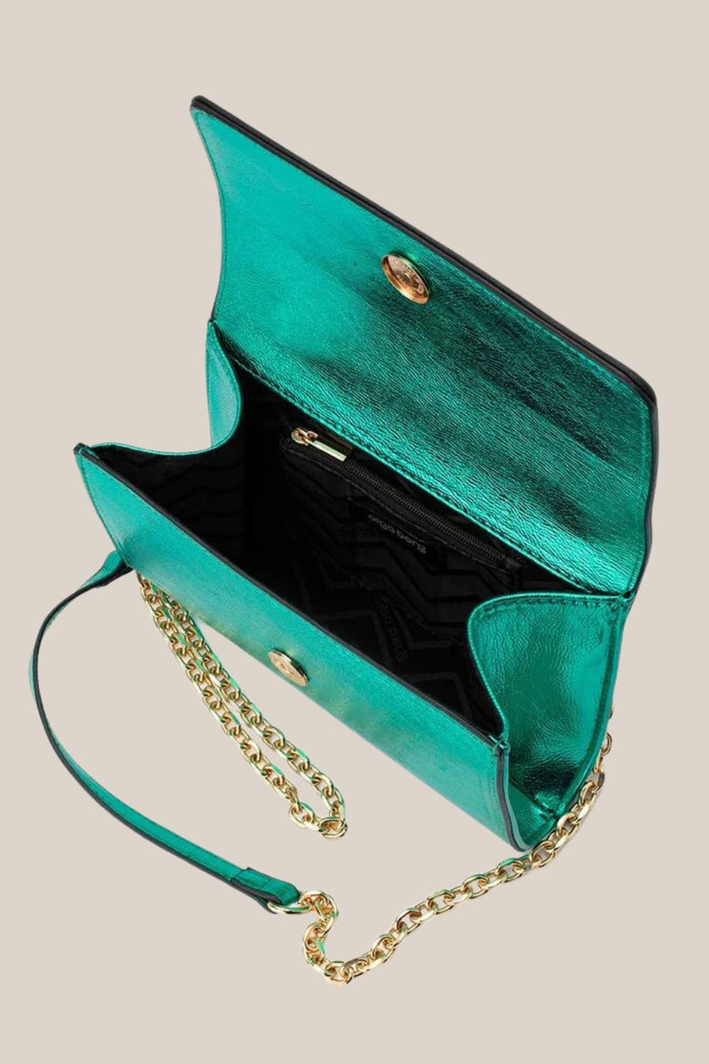Elegant and understated, the Liliana Foil Shoulder Bag is a timeless piece that will go with just about any evening look. This bag features a metallic textured vegan leather outer and a convertible shoulder chain that can be worn at two lengths. It boasts a roomy interior for your event essentials, including your smart phone, cards, keys, cash, and lippy, and a removable shoulder chain to instantly go hands free on the dance floor.