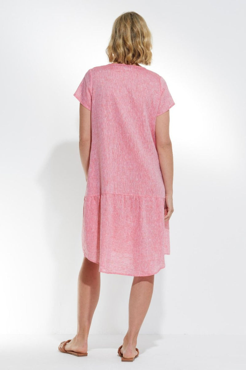 Short sleeve linen dresses are a must-have for any fashion-savvy woman. Made from 100% linen, this style is lightweight and perfect for warm weather. Featuring short sleeves, a round neckline, and a slightly oversized fit for a laid-back look. The curved hi-low hemline and tiered design give the dress a unique look that is sure to turn heads. You can wear it on its own or layer it with a jacket for a stylish ensemble.