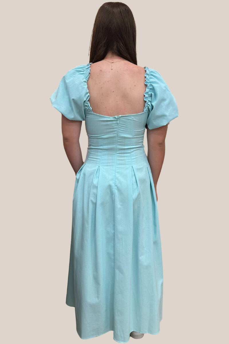 The Sophia Midi dress features the most stunning blue and can be worn on or off the shoulders, depending on your mood. Team this beauty with some sneakers of sandals for a casual look or heels and matching clutch for a dressier event.