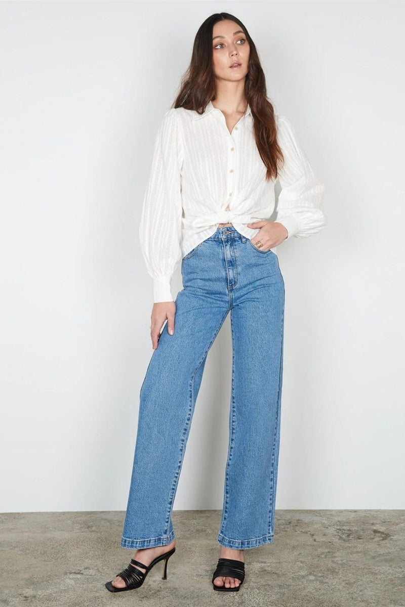 The Amaya shirt by Esmaee is a beautiful button down top that features a textured stripe fabrication and long cuffed sleeves. This top is extremely versatile and can be worn in a corporate setting with a pair of long pants but can also be worn casually with a pair of denim shorts.