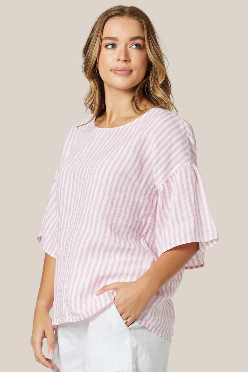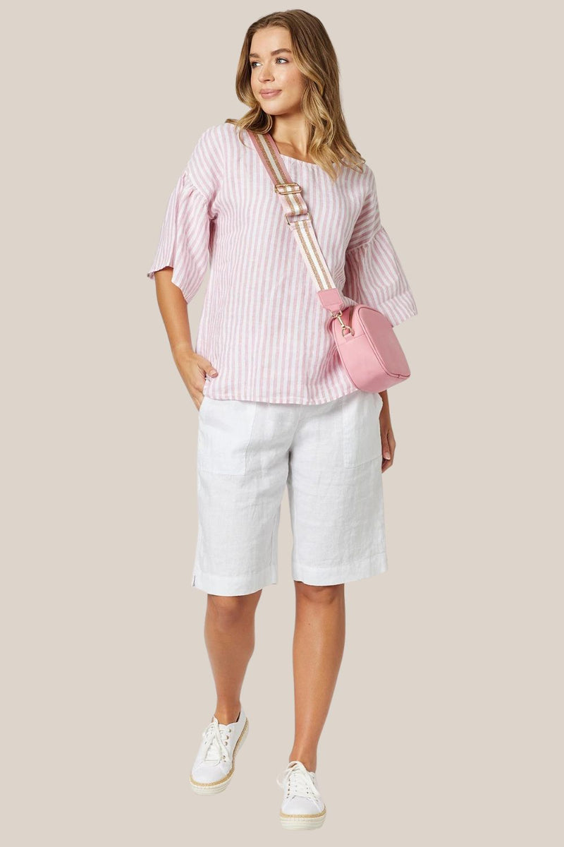 The Bahama Stripe Linen Top by Gordon Smith is a must-have for the Spring/Summer. This top matches perfectly with linen shorts, pants, or jeans. This is the perfect everyday top.