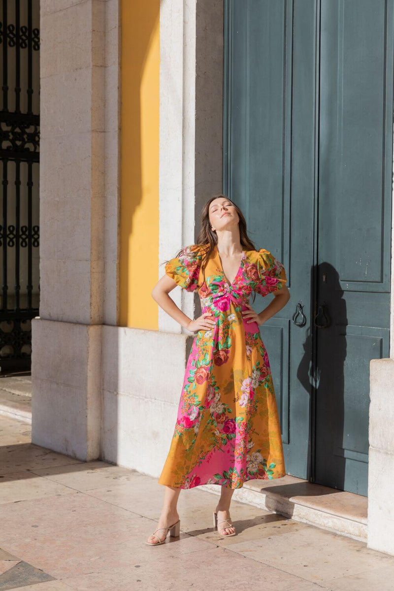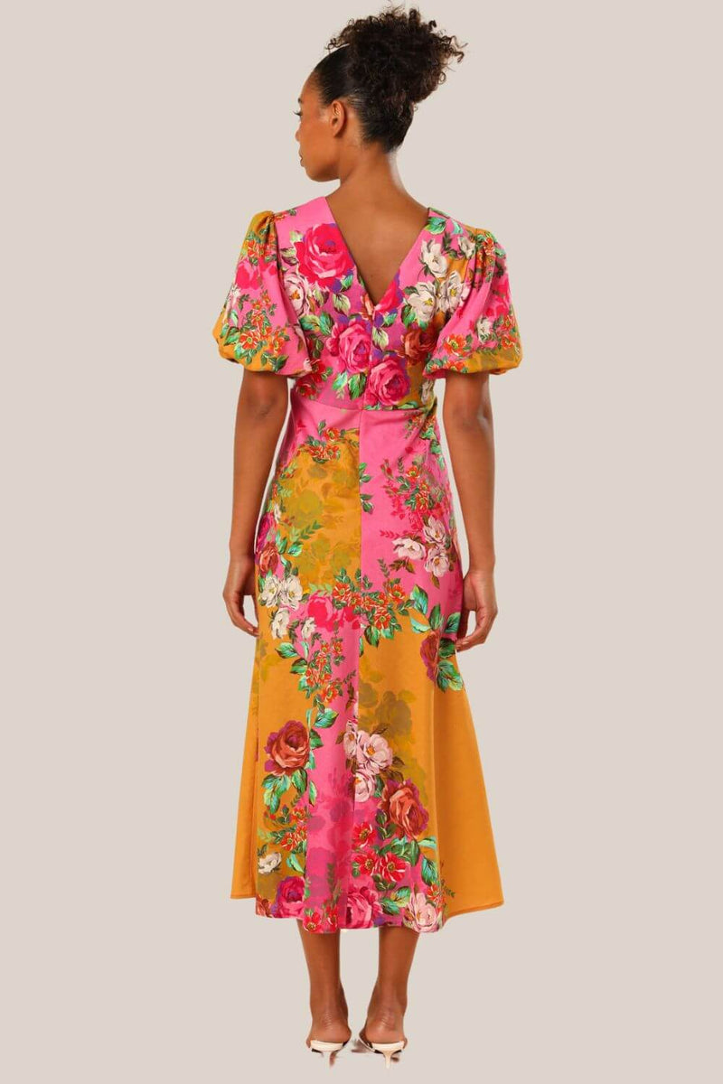 Introducing the Elena Twist Front Maxi Dress by Kachel—a luxurious, elegant, and feminine masterpiece. With its feminine print, puffed sleeves, and flattering waist tie detail, it's the perfect addition to your summer wardrobe.