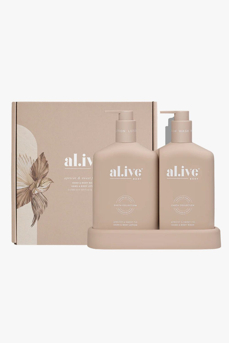 This set includes a 500ml Hand & Body Wash, 500ml Hand & Body Lotion and a matching tray.
