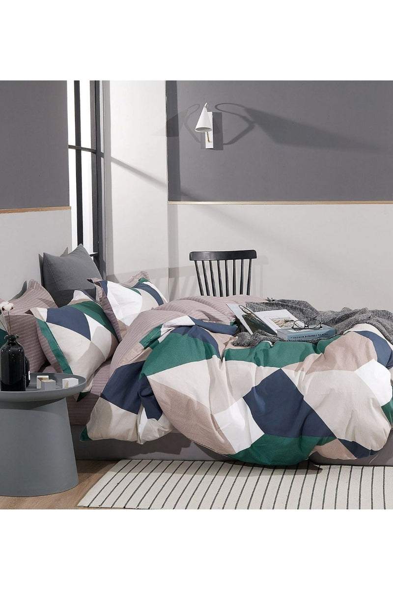 Ardor Finn Multi Quilt Cover Set features a perfect blend of greens, blue and stone hues. Perfect for a new pop of colour this Cotton quilt cover set is a must have this season.