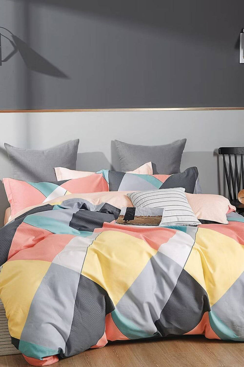 Add character to your space with the Ardor Sommer Quilt Cover Set. The layering of soft greys, combined with subtle pops of colour are the perfect way to add a touch of vibrance to your space.