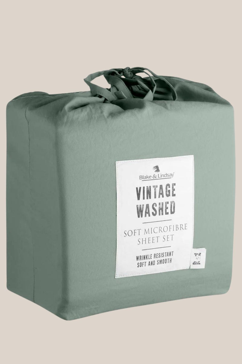 Blake & Lindsay Vintage Washed Microfibre Bed Sheet Set are soft, smooth and wrinkle resistant for everyday easy care. With fully elasticised and deep 40cm fitted sheets, they include a matching fabric drawstring bag.
