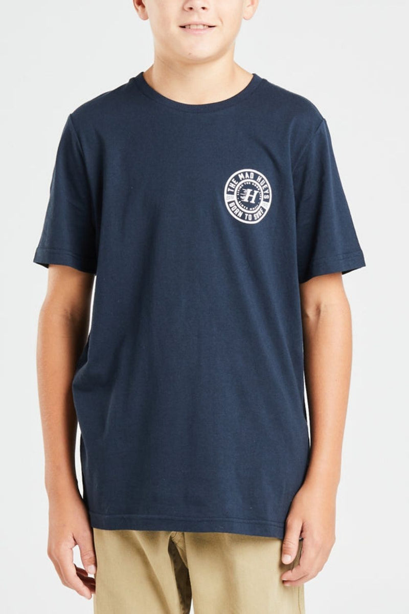 The Born to Surf Youth SS Tee from Mad Hueys is perfect for your Mad Huey-aholic.