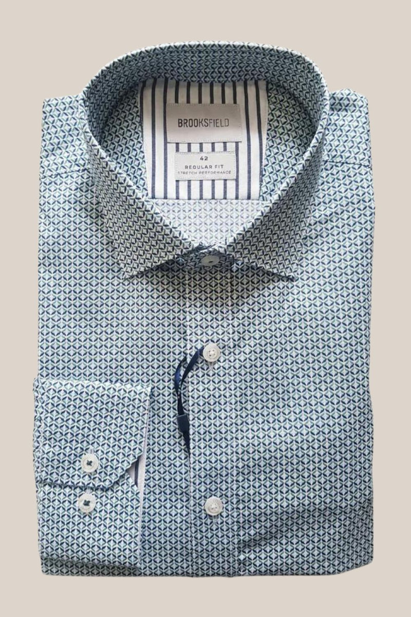 A classic Brooksfield shirt is perfect for any occasion. This luxe print shirt features convertible rounded cuffs with adjustable buttons, a regular fit design, and is a cotton stretch weave. Designed with the better cotton initiative program so you feel comfortable all day long.