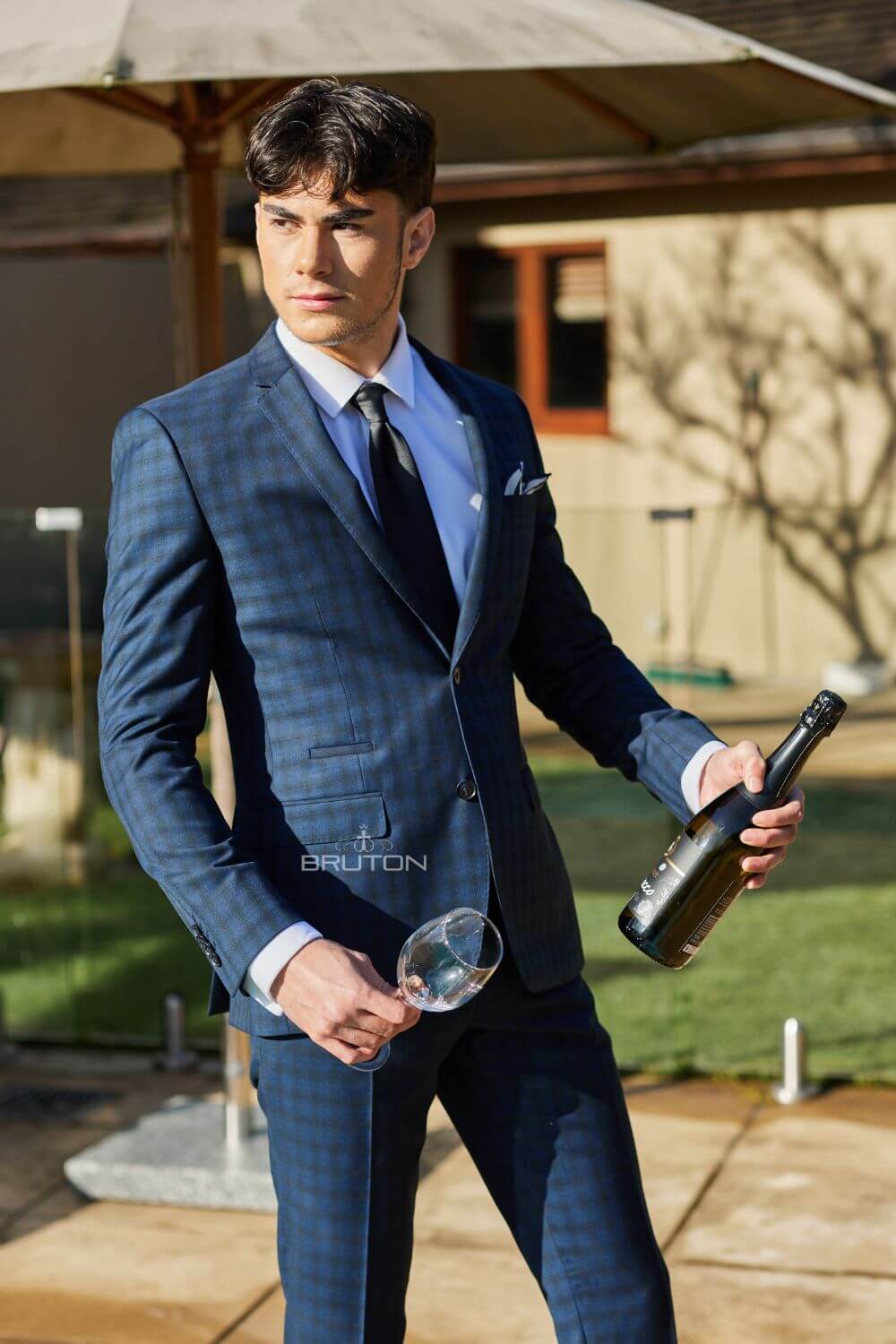Featuring a subtle yet distinctive puppy-tooth weave, Jose is an elegant choice. Look sharp when you are on or off duty. Designed with an eye-catching small front ticket pocket, Jose suit is a great everyday option. Blue is a warm, bright, vibrant option, this pattern also comes in a muted grey option.
