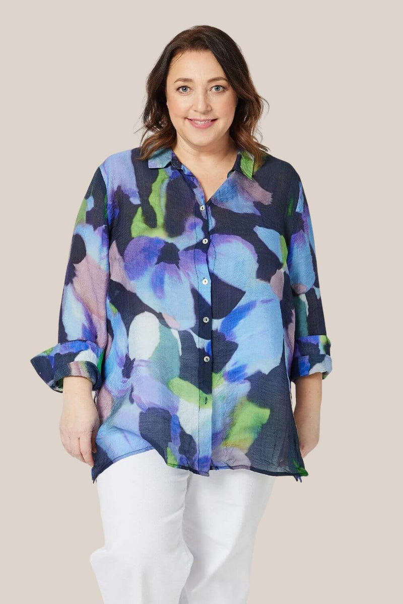 The Clarity Iris Print Shirt is a stunning print top that features long sleeves, a relaxed fit, and mother of pearl buttons. Team with your favourite linen or denim bottoms to finish the look.