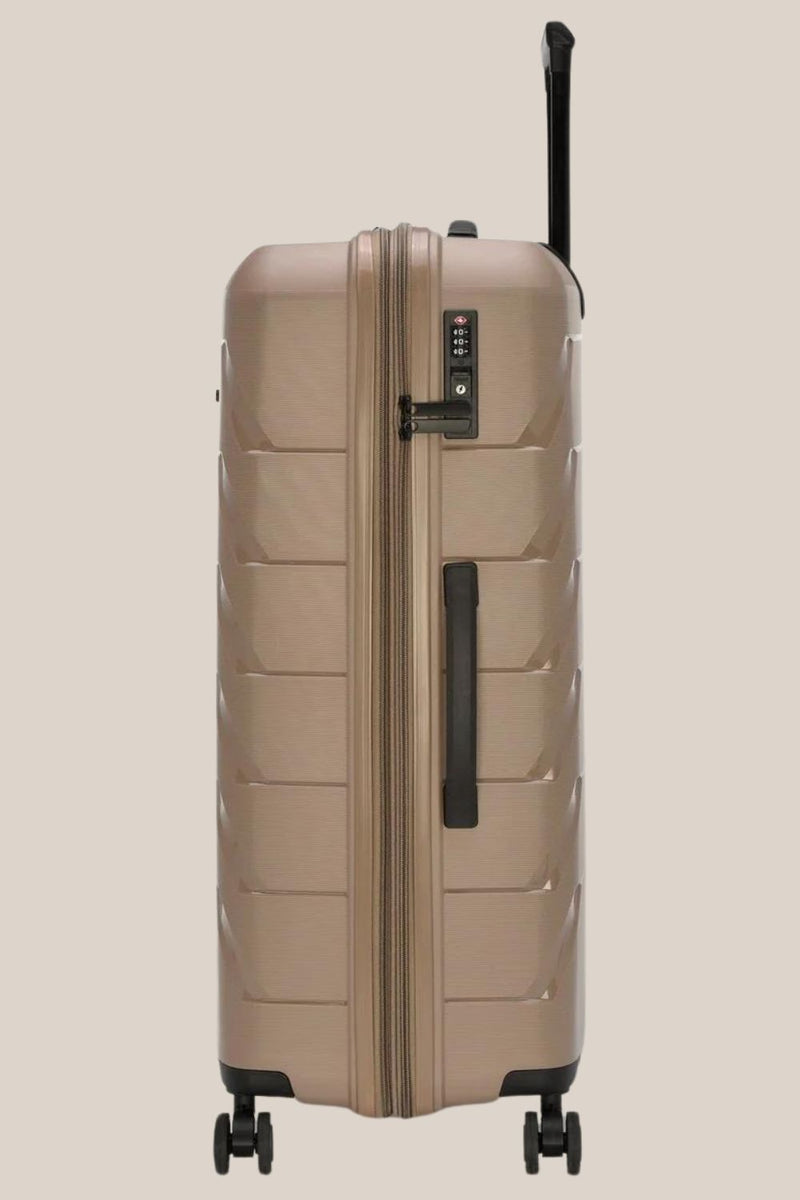 The Brisbane Large Hardcase Suitcase is an elegant set of cases designed for seamless travel combining functionality with statement style. A sleek, strong and lightweight curved polypropylene shell crafted in an impact-resistant design to minimise damage and optimise function with extra protection on hard drops. The cases are packed full of features such as expandable zips for extra space,  multi-directional silent double spinner wheels, TSA locks, a multi-stop ergonomic handle, cross strap compression system and zip pockets, all combining to enable travel with the utmost ease. The cases are designed to nest neatly into each other to save space when you are not holidaying and have a 10-year manufacturer's warranty.