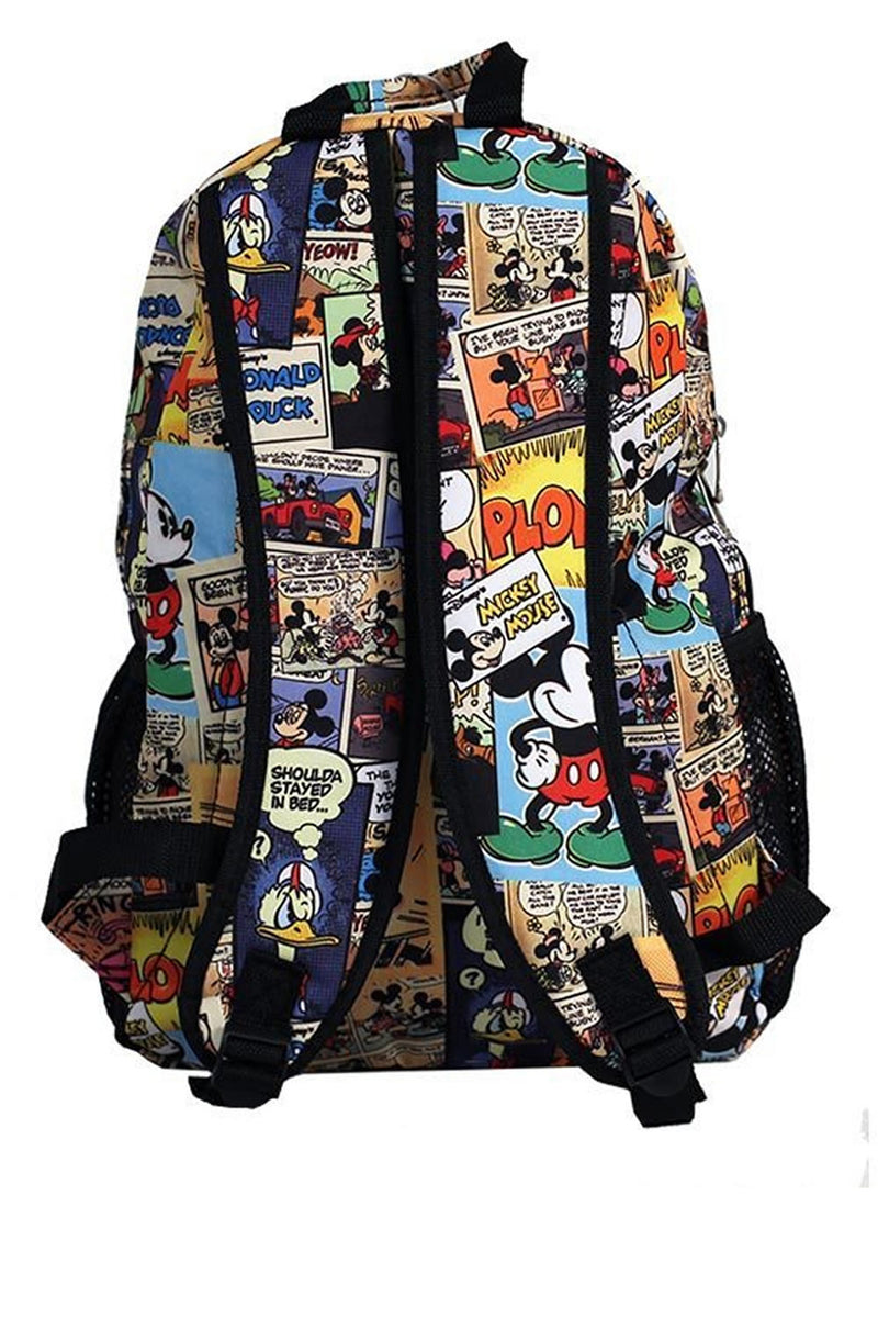 Disney Comic Backpack with mesh Pockets, expand for water bottle etc, two front compartments, top hang loop and adjustable backpack straps.