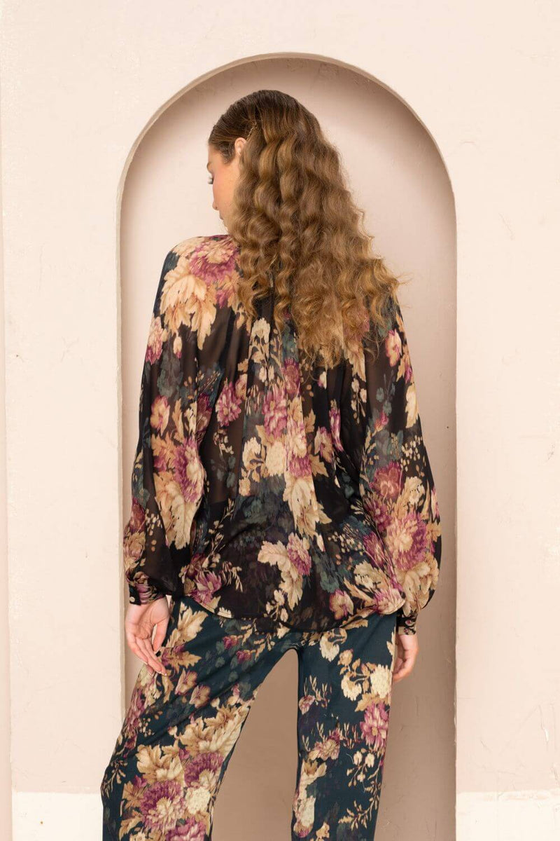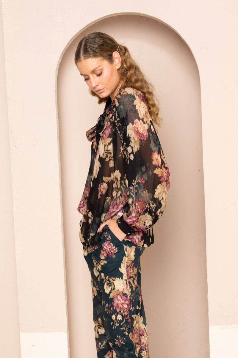 Introducing the Zina Tie-Neck Blouse by Kachel—an ideal day-to-night piece. This romantic, evening-inspired design features a tie-neck collar and billowing raglan sleeves. Effortlessly transition from day to evening in this enchanting ensemble.