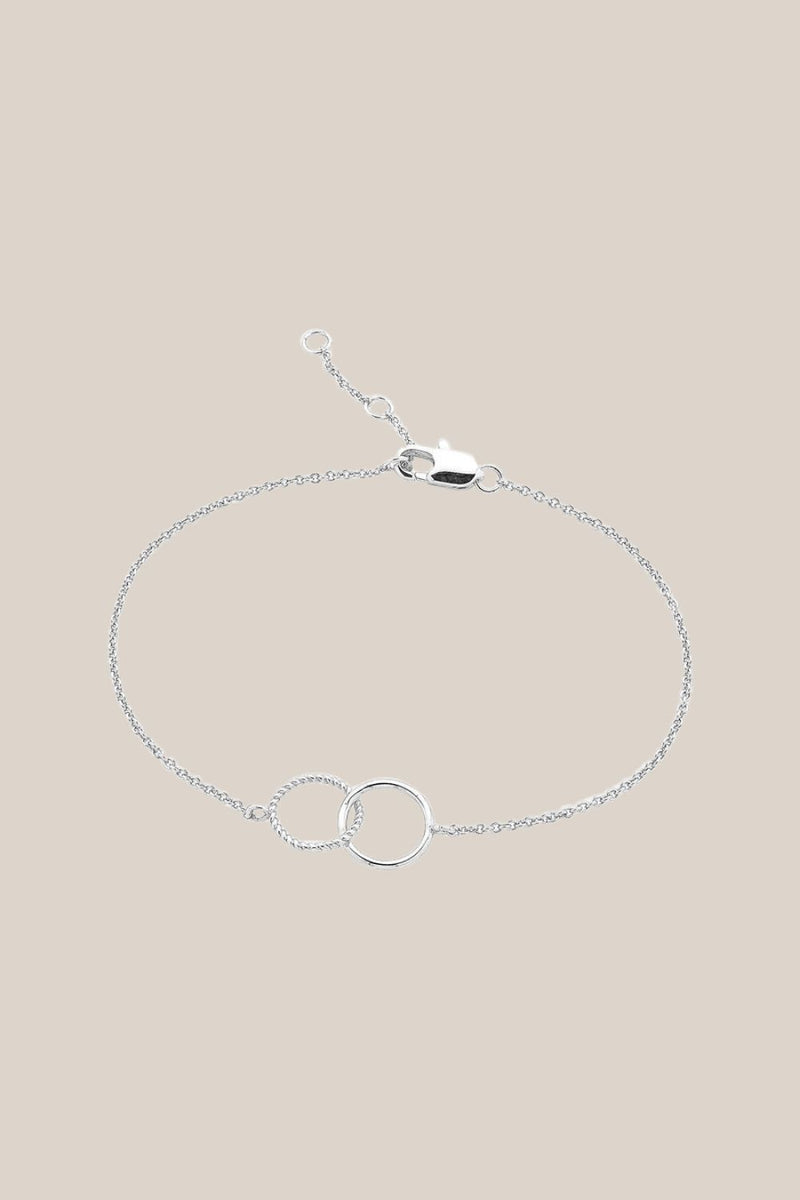 A delicate chain bracelet featuring interlinked circles, one plain, one textured. Perfect way to gift your bestie or loved one or yourself. Easy layering piece.