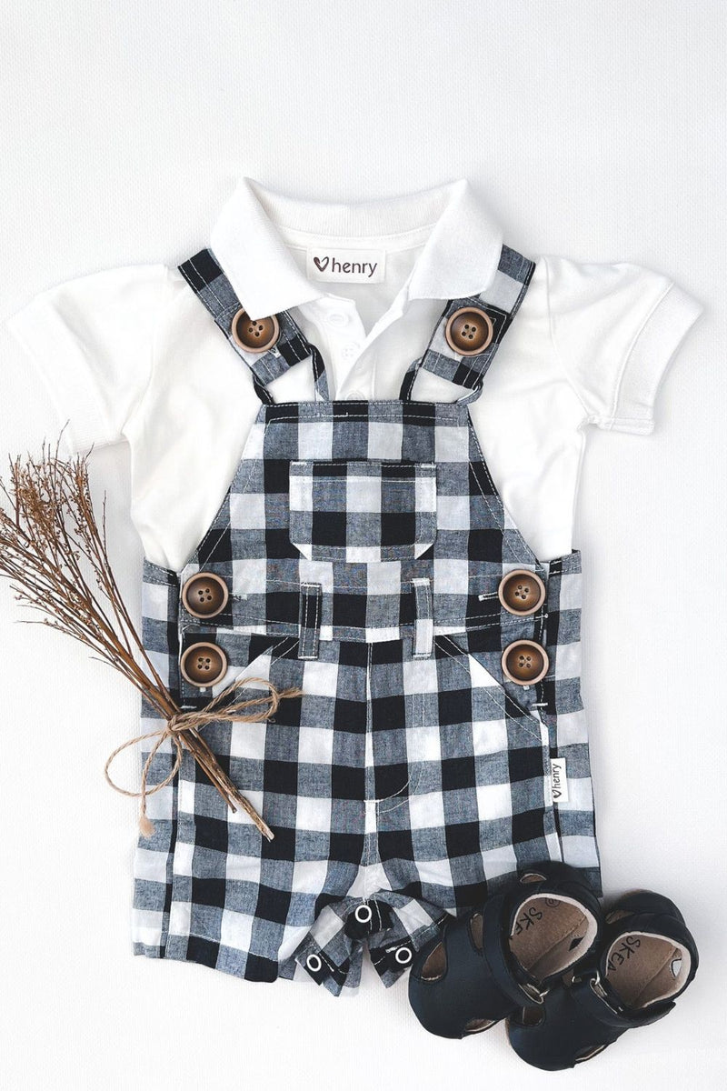 The ultimate boy's cotton dungaree. Perfect all-year-round, paired with plain polo or dress shirt romper.