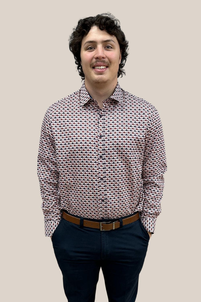 The Mendoral Design Long Sleeve Fashion Shirt will add a touch of fun to your everyday work outfit or is perfect for your next event.