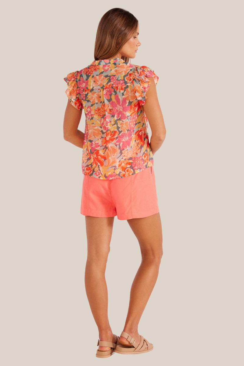 The MINKPINK Valla Frill Blouse is such a feminine blouse with its pretty floral print and frill sleeves. Team with the MINKPINK Lila Belted Shorts for the perfect Summer look.