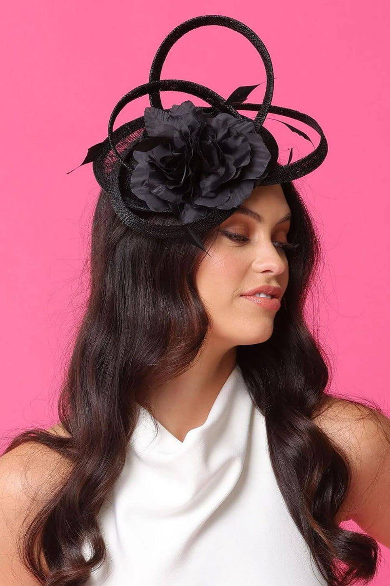 The Morgan & Taylor Avah Plate Fascinator in Black is a classic style, perfect for a dramatic look. The structured, plate shape is finished with light feather detailing, balancing drama with elegance. The fitted headband ensures comfortable wear for all-day styling.