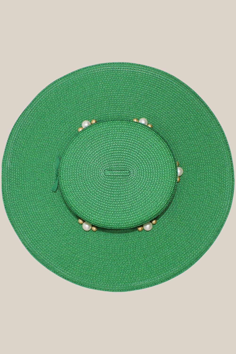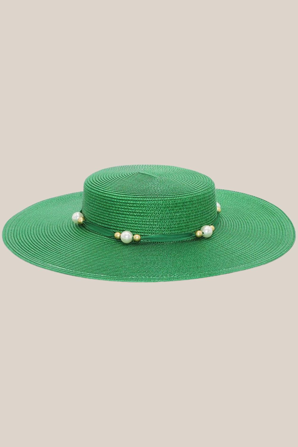 • Classic boater shape featuring bead detailing around the crown