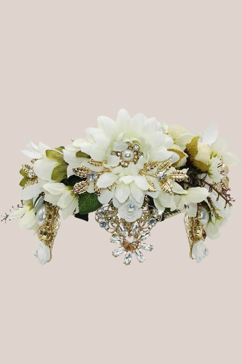 The Morgan & Taylor Violet Headpiece in white is a vibrant and luxe bouquet, adding elegant playfulness to any look. Perfect for event styling, such as racewear fashion, Derby Day, weddings, evening wear, and festival wear. The band is finished with soft material, ensuring a comfortable fit. The perfect headpiece to add whimsy to many forms of personal style.