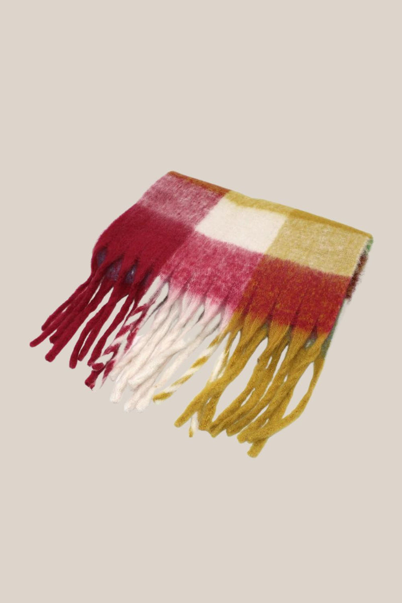 The Morgan and Taylor Emma Scarf in burgundy is bright, chic and chunky, ideal for snug winter styling.