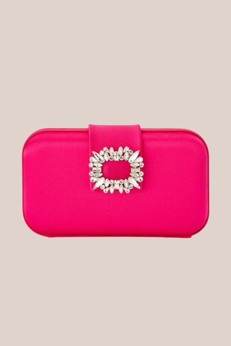 There's nothing like a little sparkle to lift your mood! The Emmy Crystal Trim Clutch from Olga Berg features a crystal embellished buckle trim making it the perfect addition to any evening look. Carry in the palm of your hand or use the optional shoulder chain to go hands free.