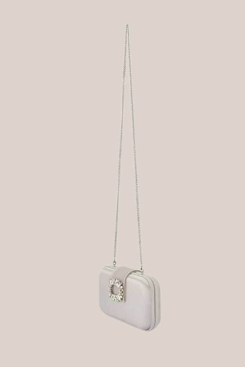 There's nothing like a little sparkle to lift your mood! The Emmy Crystal Trim Clutch from Olga Berg features a crystal embellished buckle trim making it the perfect addition to any evening look. Carry in the palm of your hand or use the optional shoulder chain to go hands free.