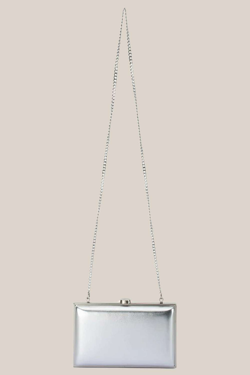 The Lucy Metallic Clutch shines with a sleek, reflective finish that will add a touch of glamour to any look. Its chic design and versatile size make it the perfect accessory for those special nights out, effortlessly elevating your look with a hint of metallic. This stunning clutch comes with a removable shoulder chain that tucks inside when not in use.