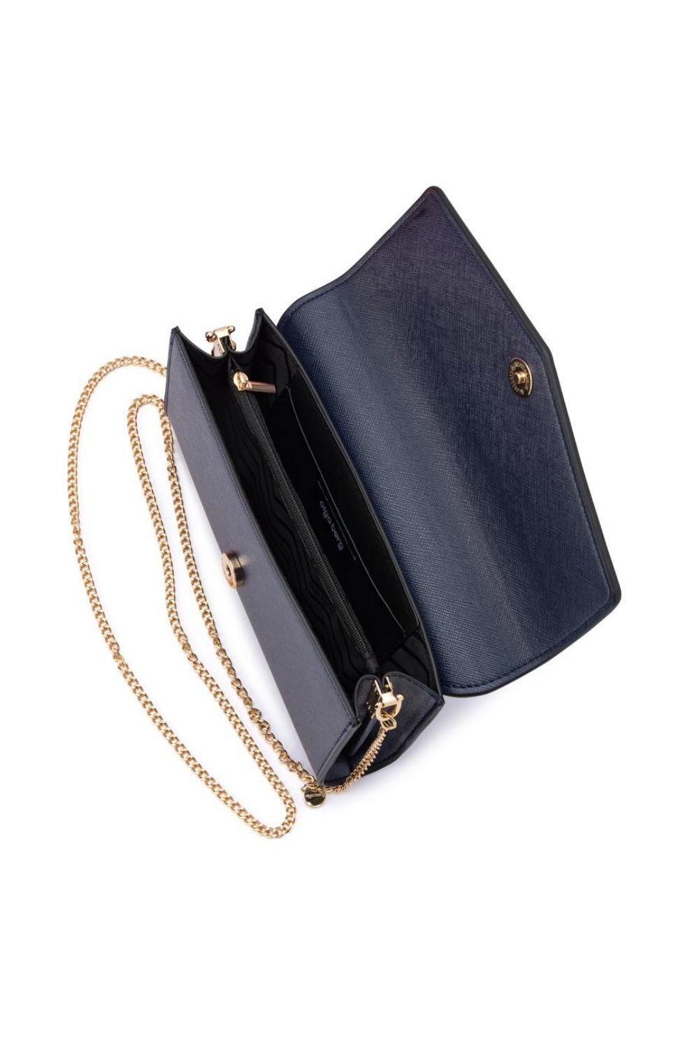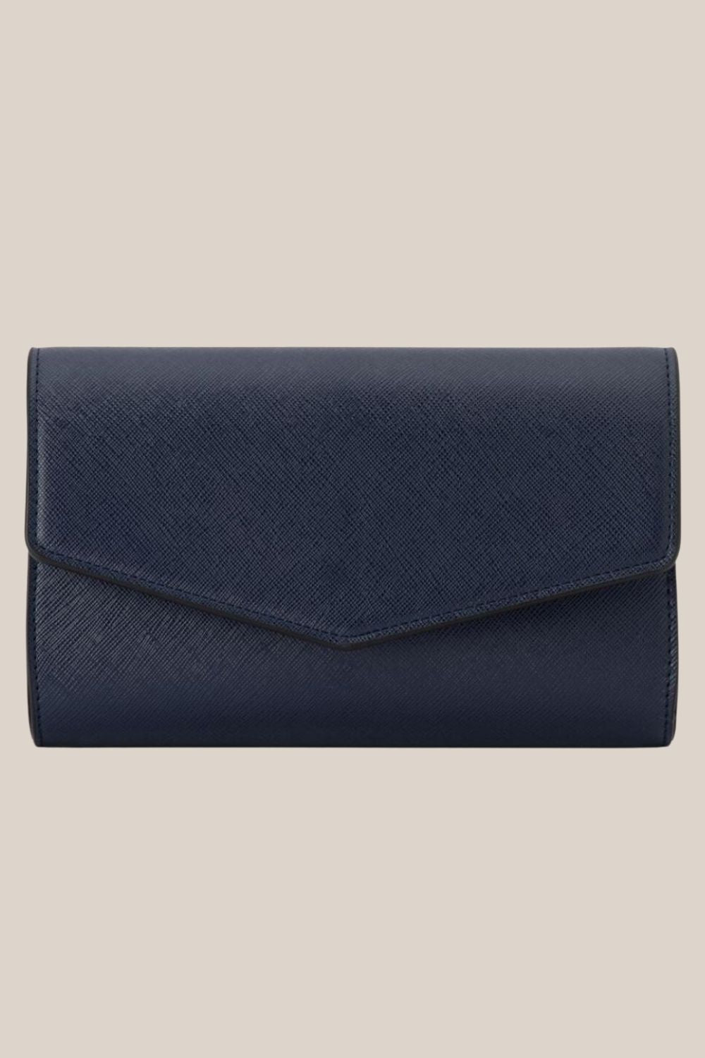 For any occasion, the Nic Envelope Clutch is sure to pair perfectly with all your looks, day and night. This navy clutch features a spacious interior with multiple compartments and subtle hardware detailing. This bag includes a removable shoulder chain so you can go hands free at a moments notice.