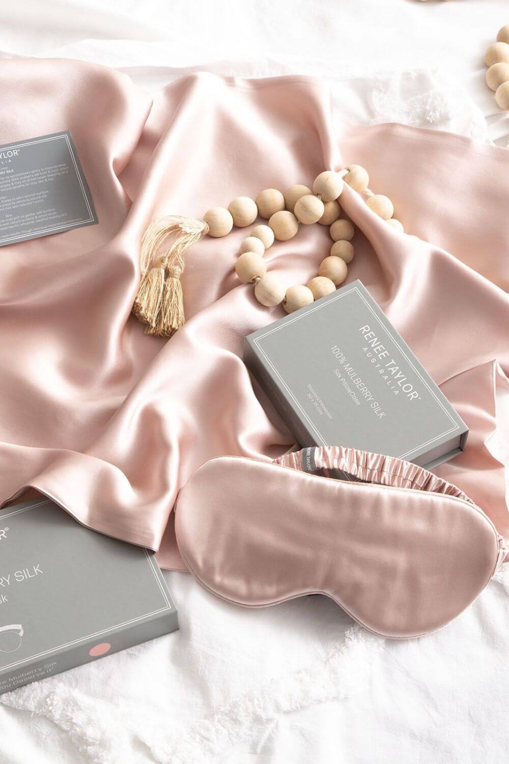 Silk prevents wrinkles and creasing across your face by allowing the skin to glide gently across the surface. Silk contains 18 amino acids that naturally complement your skin care regime. Naturally hydrating, silk helps delicate facial skin retain its moisture, reducing the appearance of fine lines around the eyes. Embracing Renee Taylor's soothing silk essentials for optimal benefits and Co-ordinate with Silk Pillowcase.