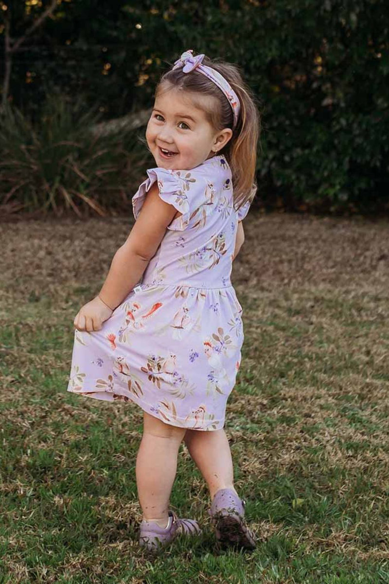 The Snuggle Hunny Major Mitchell dress is beautiful and made from certified organic cotton. Soft and stretchy, our dresses are easy-care and very comfy for bub. It is sleeveless and part of the Bush Friends Collection.