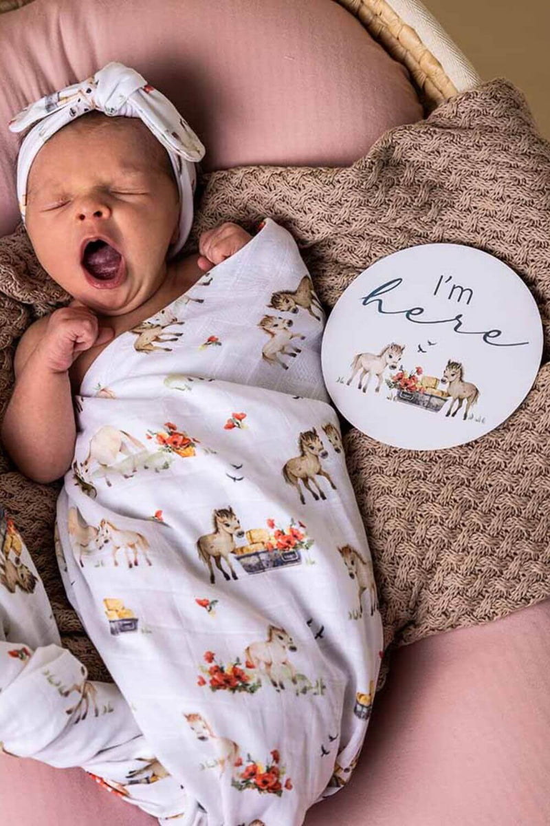 Capture your baby's milestone moments and document their 'firsts' in photographs to treasure for a lifetime with the Pony Pals & Pebble Milestone Cards. Perfect for that birth announcement photo; they match beautifully with the Pony Pals jersey & muslin wraps and organic clothes.