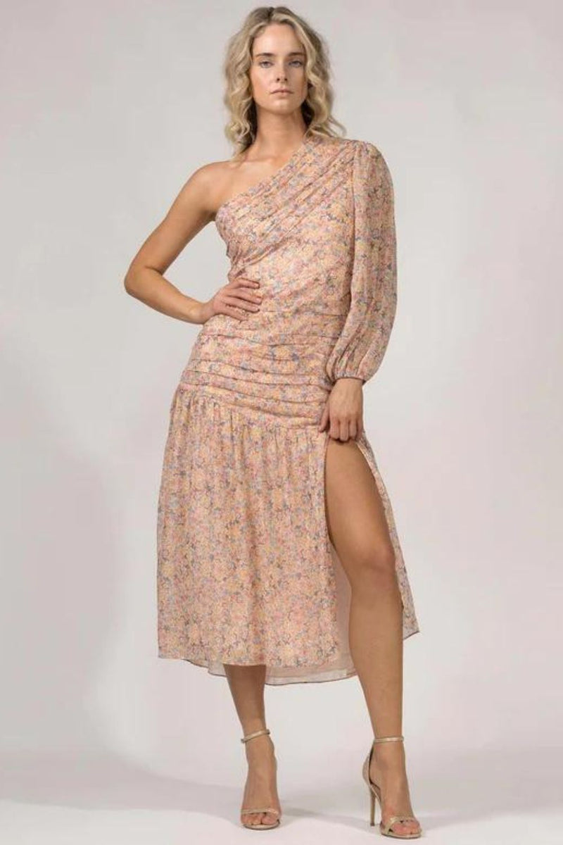 Need a dress that will ensure all eyes are on you? The Postcard Maisie Midi Dress from Three Of Something is the perfect solution! This dress features a one shoulder detail and split up the leg as well as its beautiful print. Don't miss out on this one!