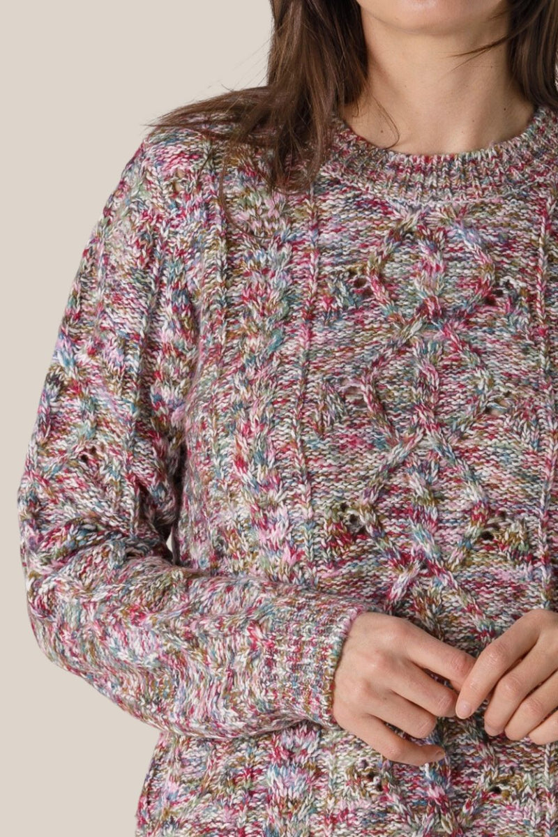 Introducing the Multi Cable Jumper! This one of a kind jumper is the perfect way to add a unique, stylish flair to your wardrobe. Crafted from an acrylic and wool blend, this gorgeous designer piece boasts long sleeves and a flattering round neckline. Plus, it’s finished with a stunning mix of colors and ribbed hemline that comes together for a truly special look. Whether you want to wear this amazing jumper on its own or layered over your favorite t-shirt, you can be sure that it’ll turn heads.